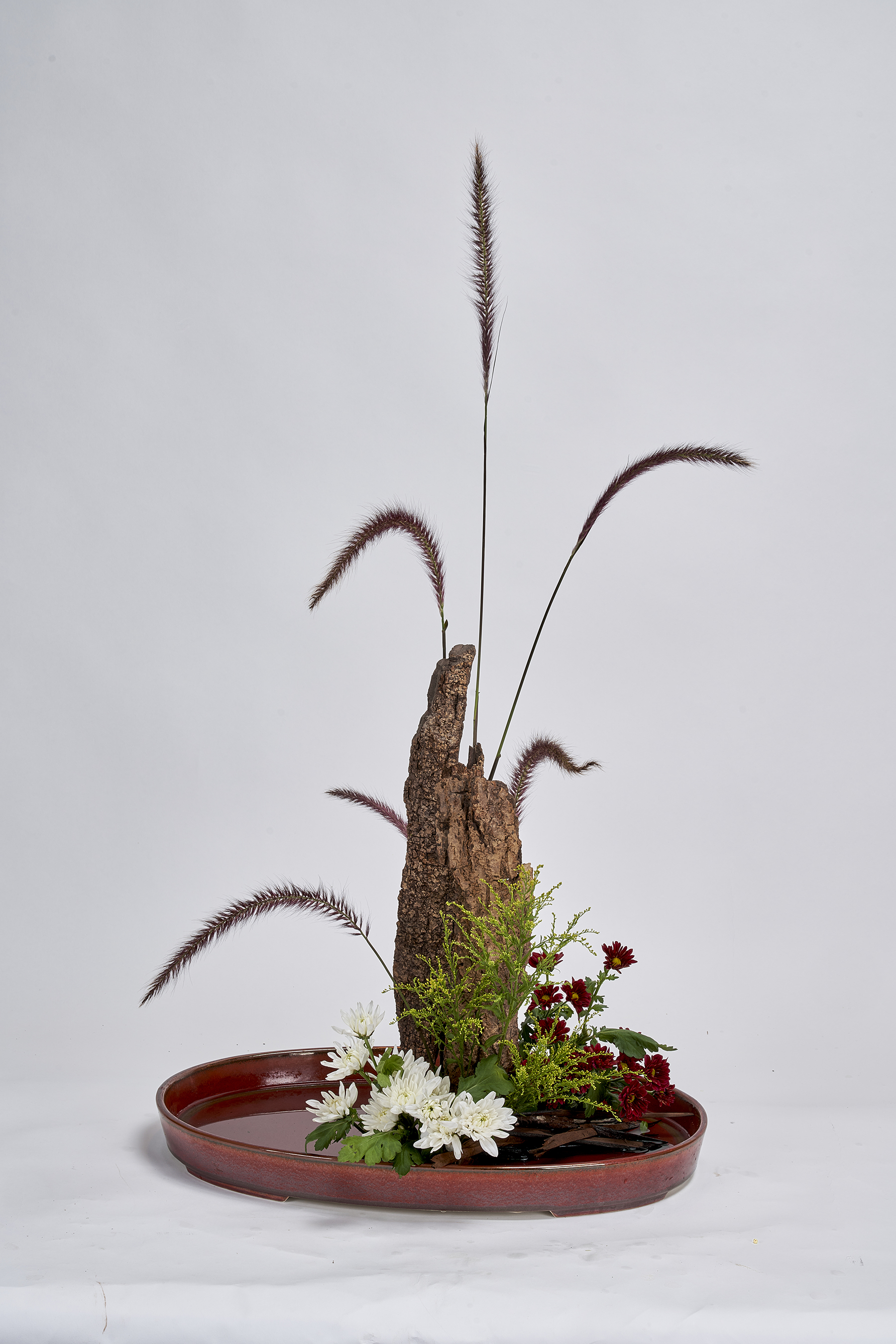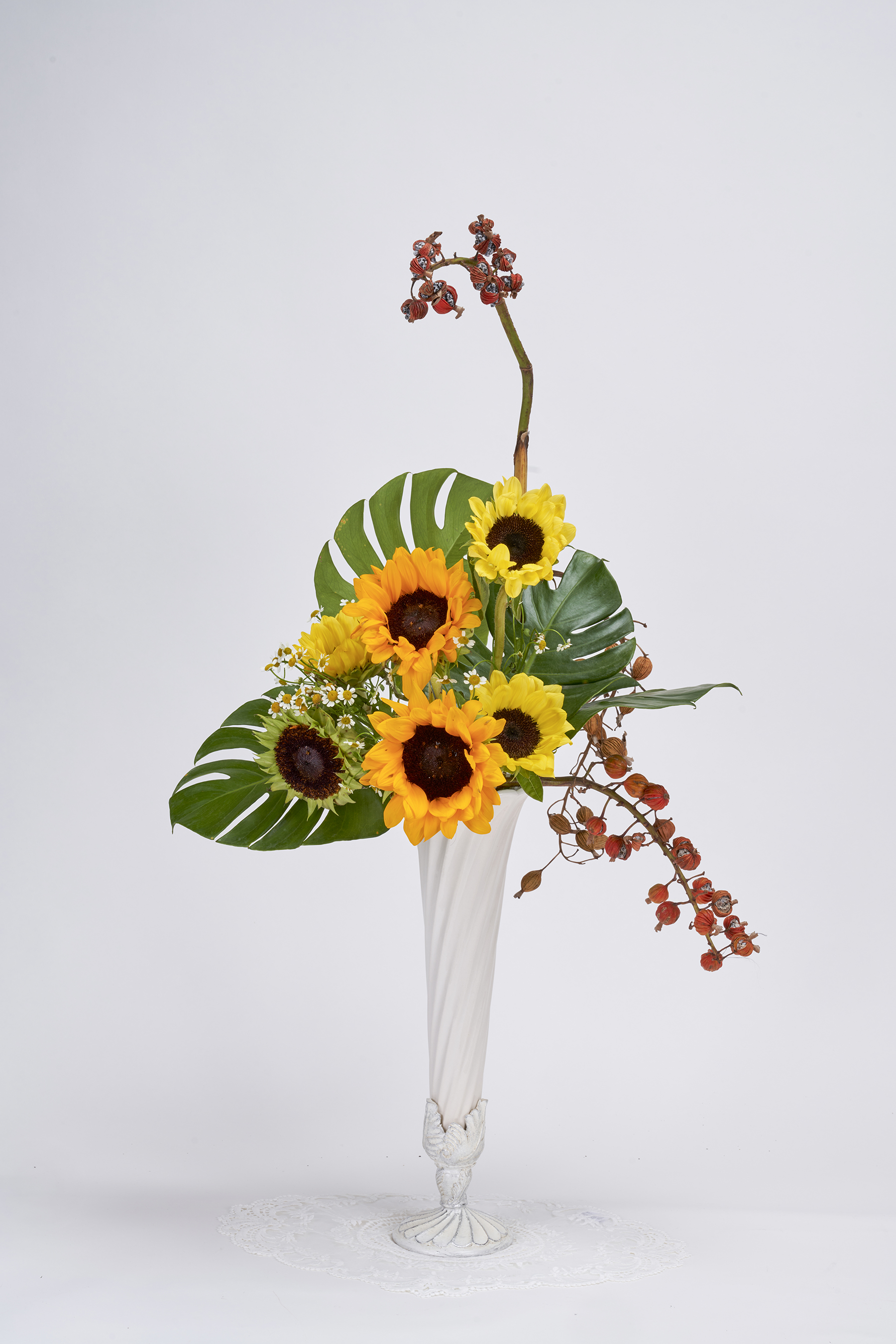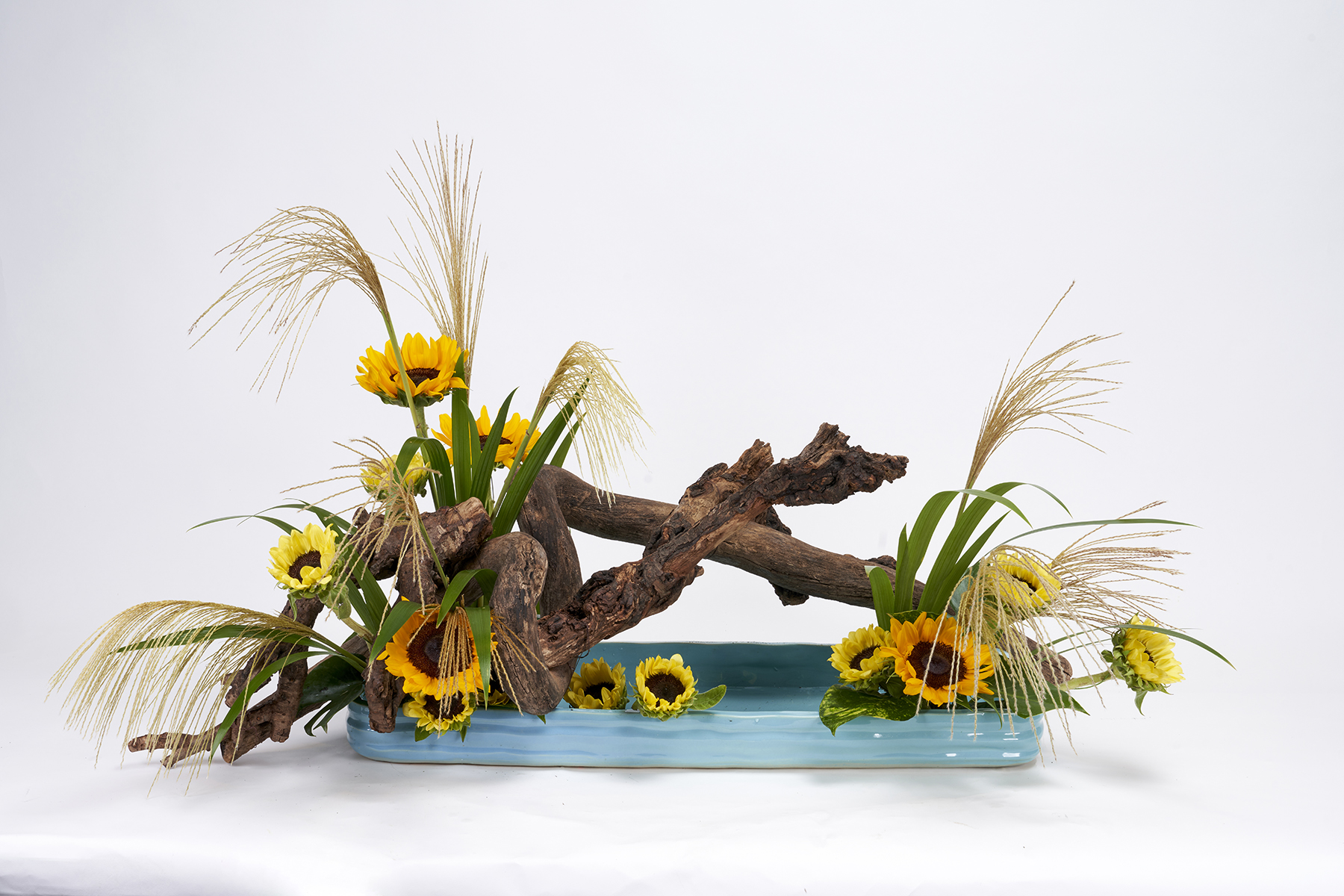 向日葵、芒草、著莪、黃金葛、電信蘭、枯木