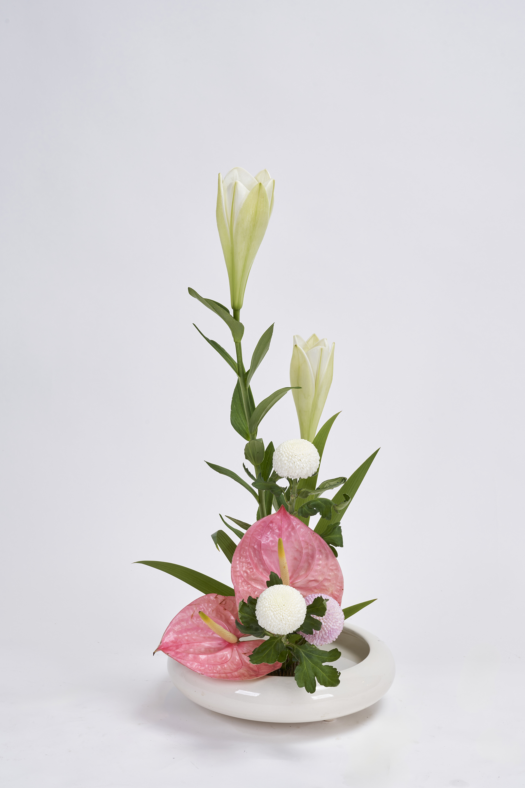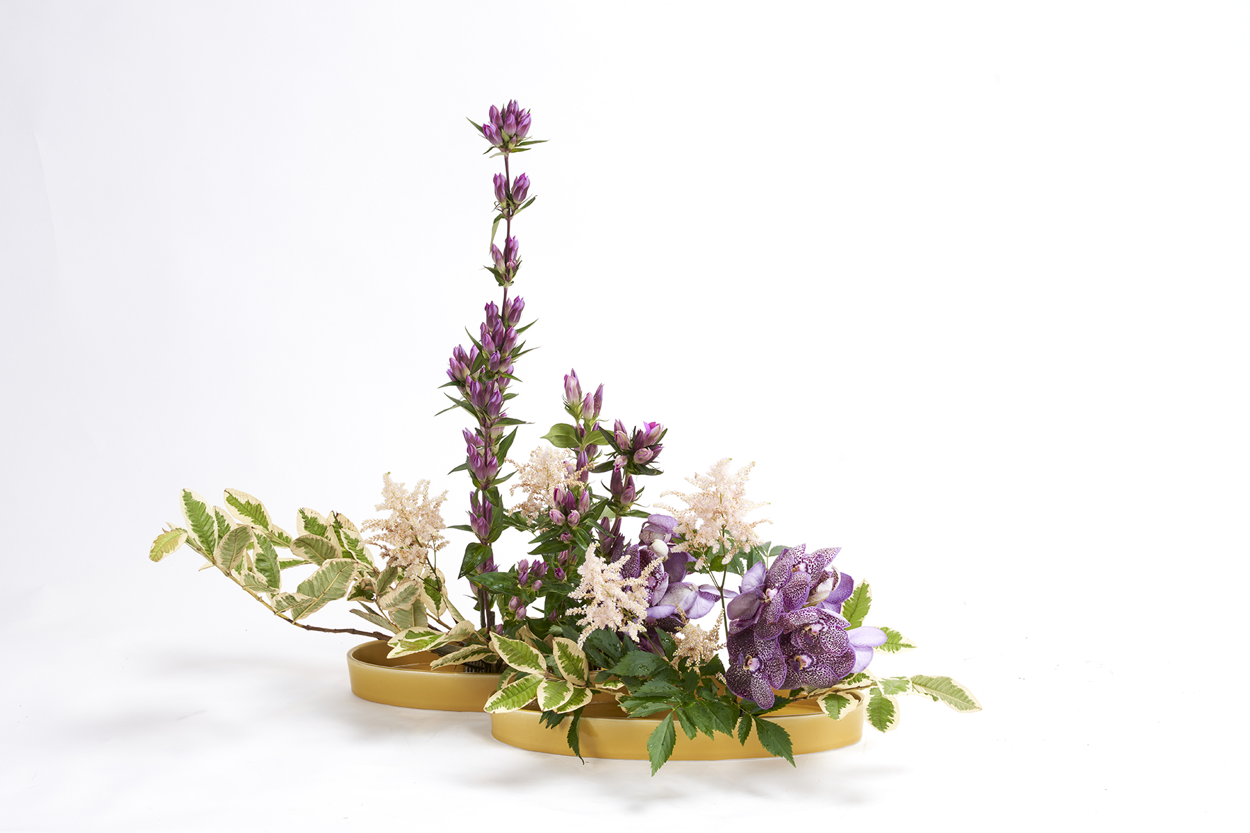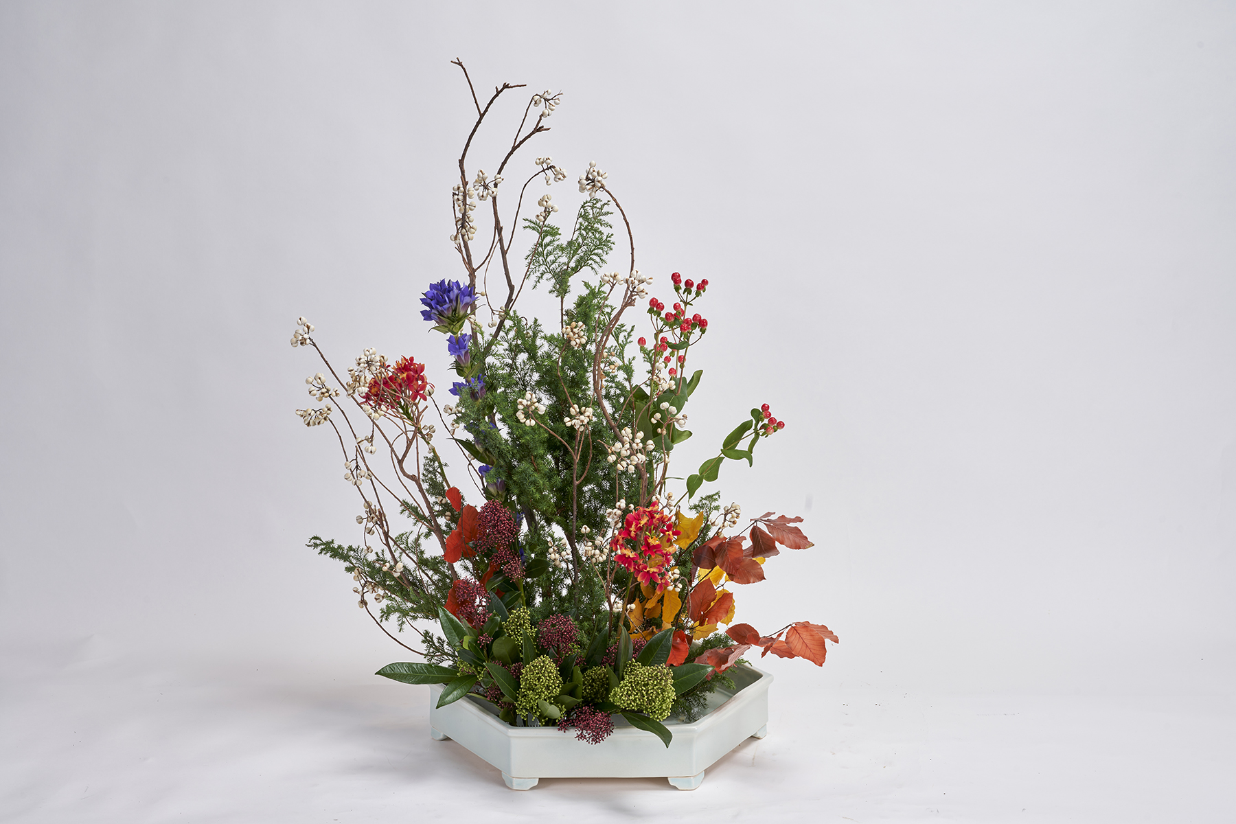 羅漢松、鐵砲百合、臘梅、龍膽、重瓣百合、佛光、黃椰子、藍星花