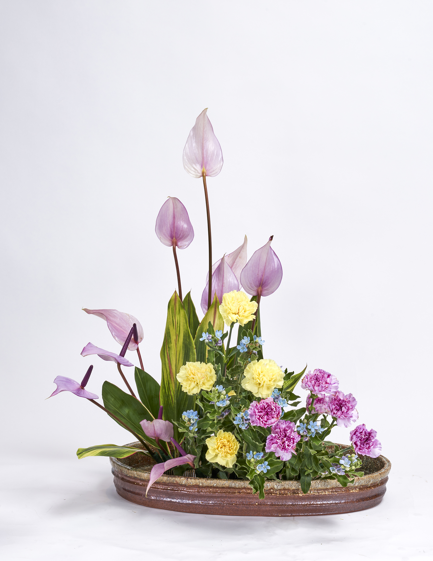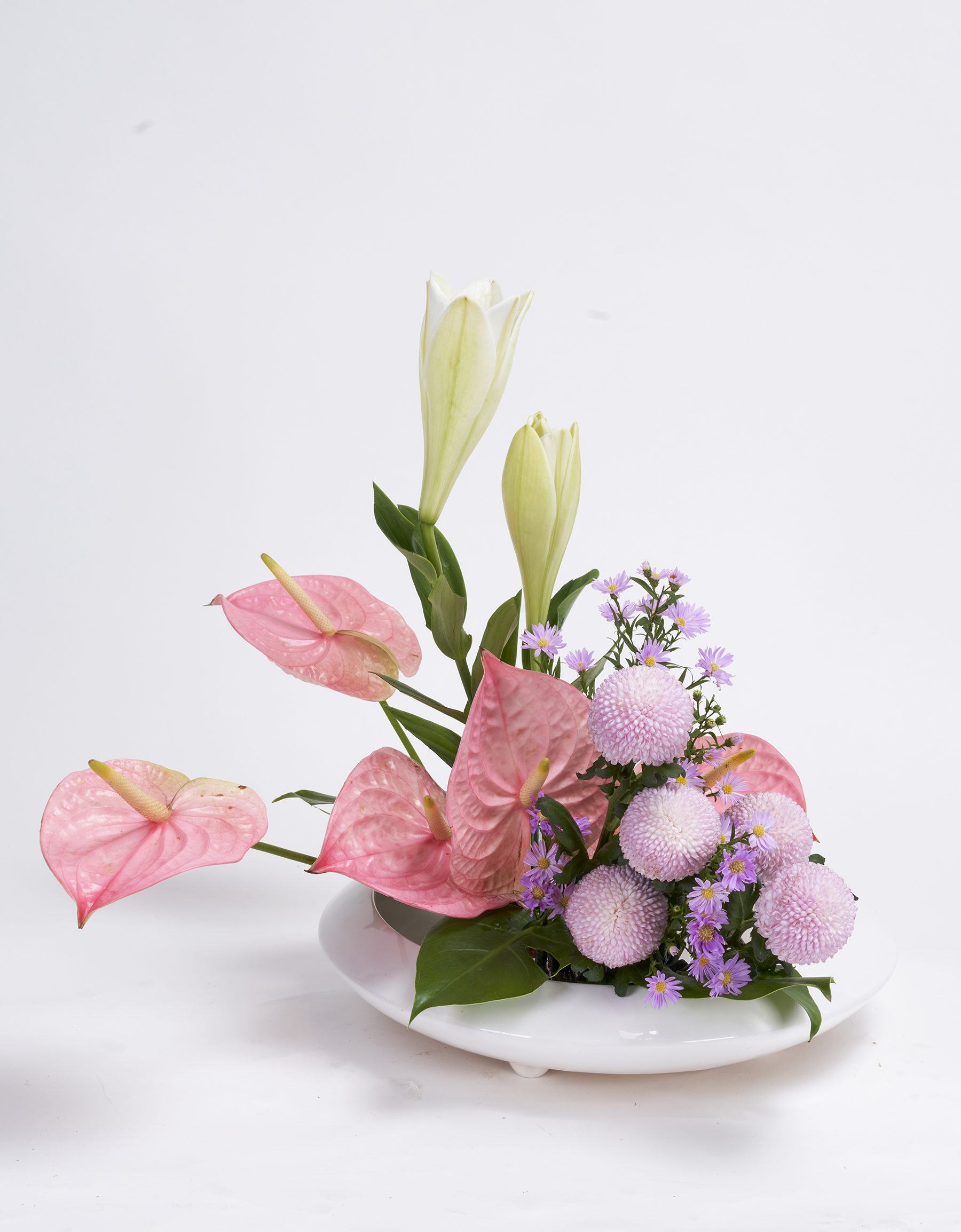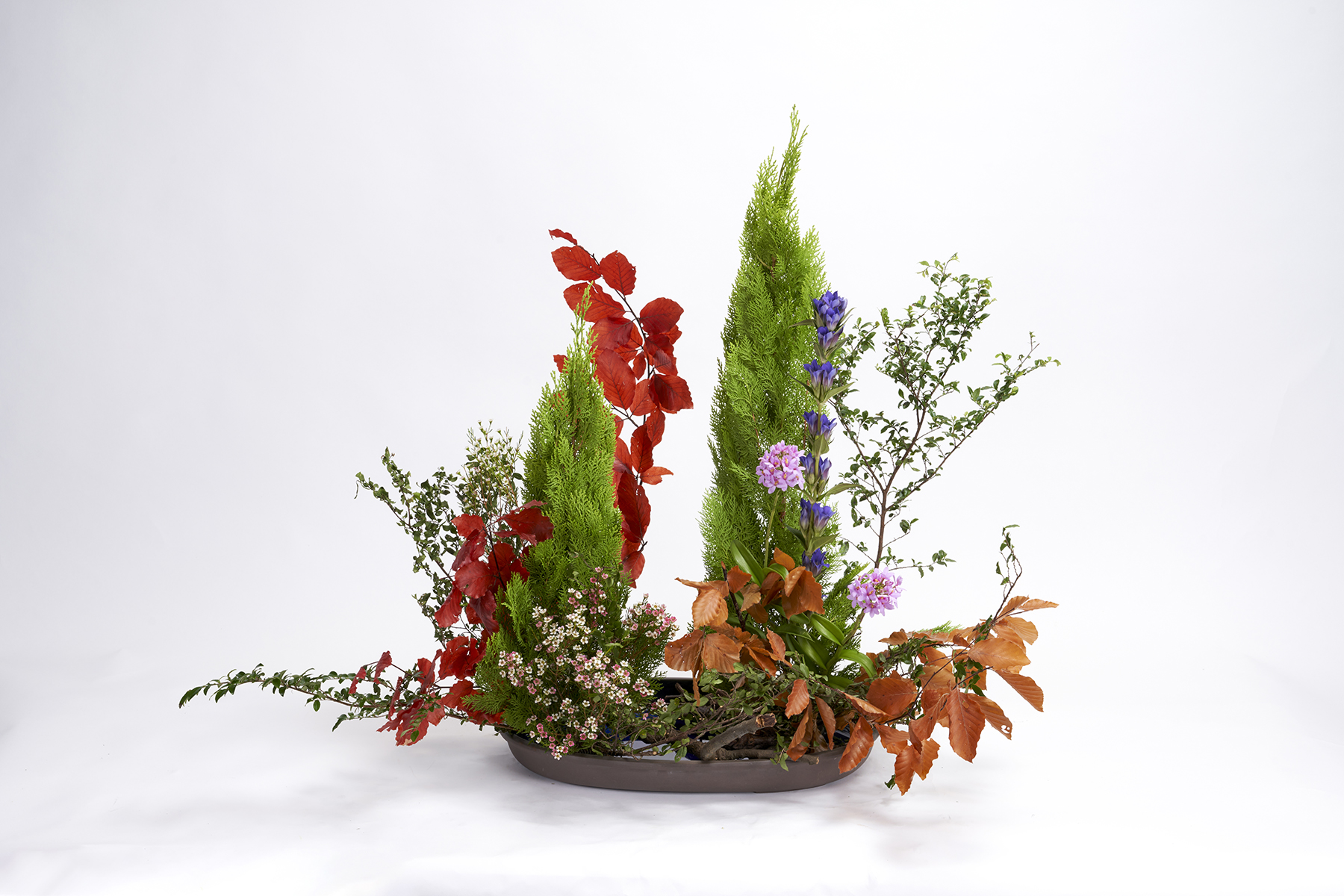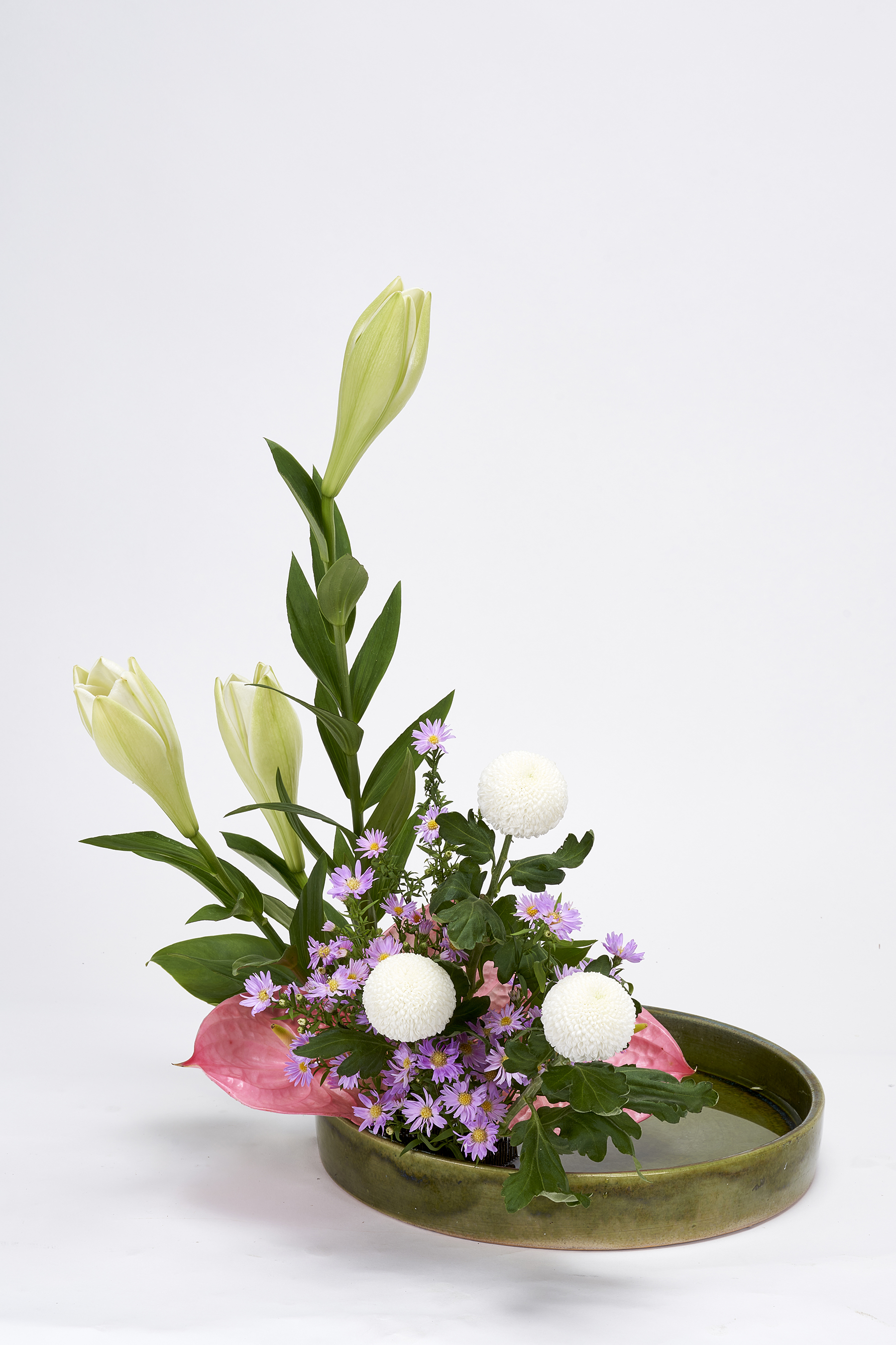 羅漢松、鐵砲百合、臘梅、龍膽、重瓣百合、佛光、黃椰子、藍星花