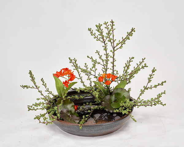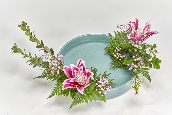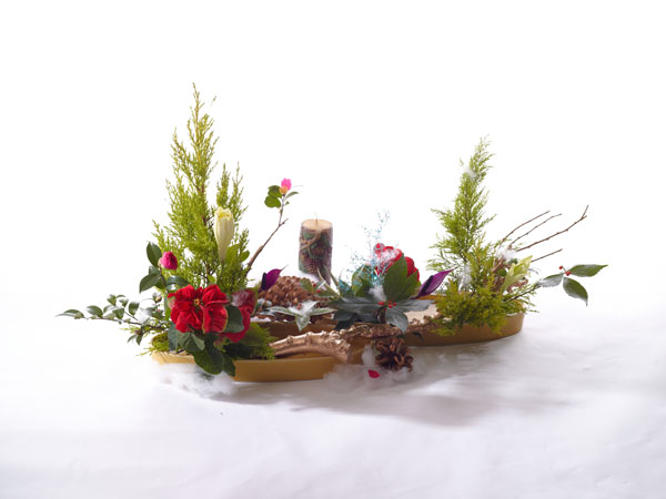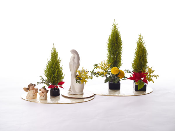 羅漢松、鐵砲百合、臘梅、龍膽、重瓣百合、佛光、黃椰子、藍星花