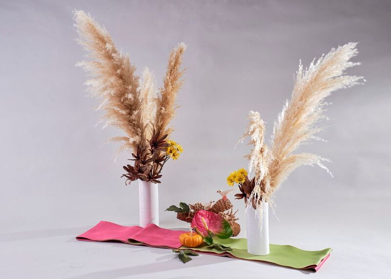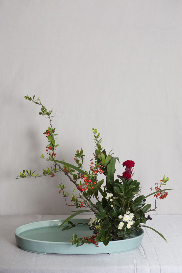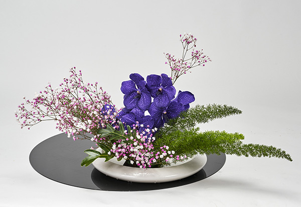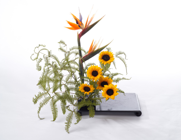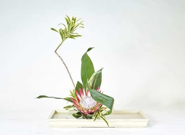 芭蕉蘭葉、椰子葉、黃金側柏、波斯菊、蛇木、劍尾雞冠